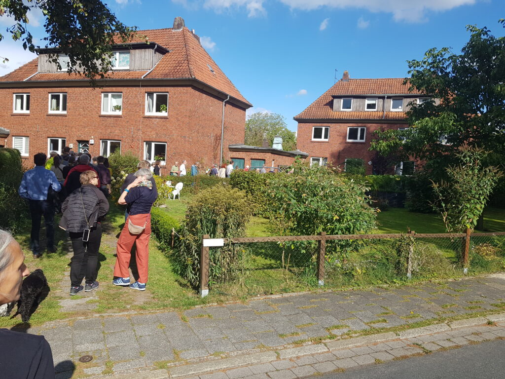 Von 14.30 Uhr bis 17 Uhr lädt am Ende der Straße bei der Hausnummer 70 ein Straßencafé mit selbstgebackenem Kuchen zum entspannen und klönen ein. Immer wieder kommt es hier zu schönen Begegnungen mit aktuellen und ehemaligen Bewohner*innen der Straße.